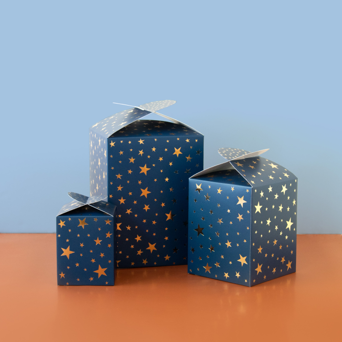 Ontdek deze luxe cadeaudoosjes! Uit de mooie collectie van House of Products hebben we deze supergave cadeaudoosjes in ons assortiment opgenomen. Goud folie sterretjes all over bedrukt op een donkerblauwe ondergrond.