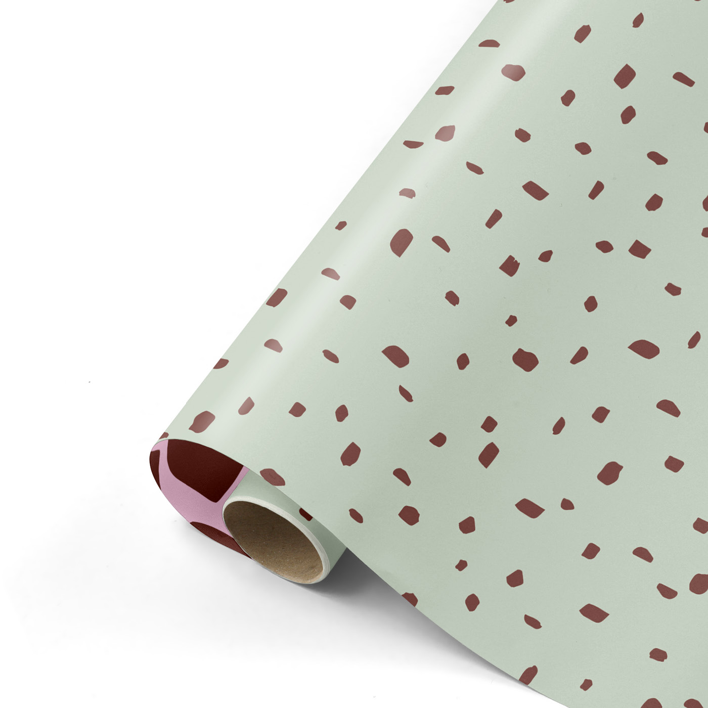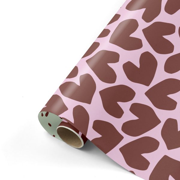 Dit cadeaupapier kan je aan 2 zijden gebruiken. De voorkant is gedecoreerd met getekende donkerpaarse harten op een lila achtergrond. Op de binnenzijde is het Minimal Dots patroon afgebeeld. Willekeurige donkerpaarse streepjes op een groene achtergrond.