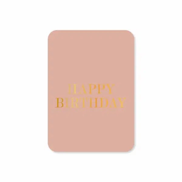 Het kaartje heeft een A7 formaat en is 7,4cm x 10,5 cm groot. Het kaartje is 300 grams (warm wit) papier met een matte uitstraling, afgewerkt met ronde hoekjes en goudfolie op een donkerroze achtergrond.